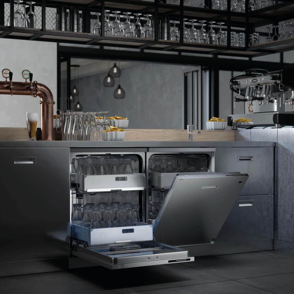 Marke: ASKO, Geschirrspüler Gewerbe, Einbauart: Einbau; Unterbau, Breitennorm: 60 cm, Sprühsystem: 5 Spray, Trocknungssystem: Kondenstrocknung, Display: digital, Anzahl Programme: 12, Programmende-Signal: Ja; Optisch; Akustisch, Induktionsmotor, Wasseranschluss: Warm- (max. 70 °C) oder Kaltwasser, Höhe der verstellbaren Füsse: Ja; 861 mm – 902 mm, Wasserhärte Einstellung, Strom: 3 x 10 A, Anschluss: 400 V; 3 PN, Frequenz: 50 Hz