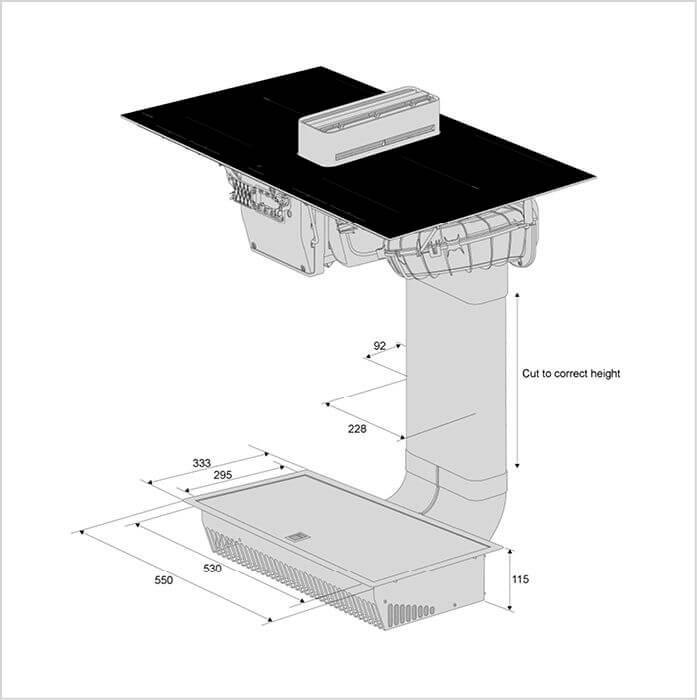 Umluftkit für Induktionskochfeld mit Dunstabzug ASKO HIHD854GF, Kanalsystem kompatibel mit Naber F-RVB 150