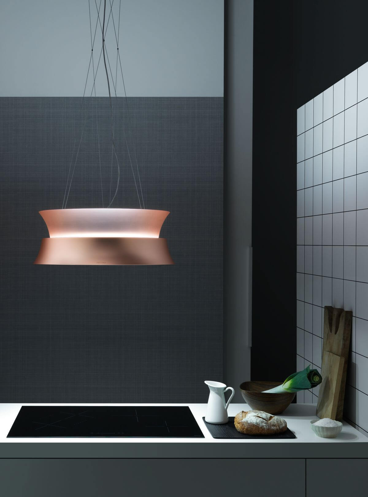 Marke: FALMEC, CircleTech COPPER, Einbauart: Inselhauben; Mit Kabeln an der Decke befestigt, Umluft, Randabsaugen, Farbe: Kupfer, Beleuchtung: Ja; LED 4 x 1.2 W (4200K)